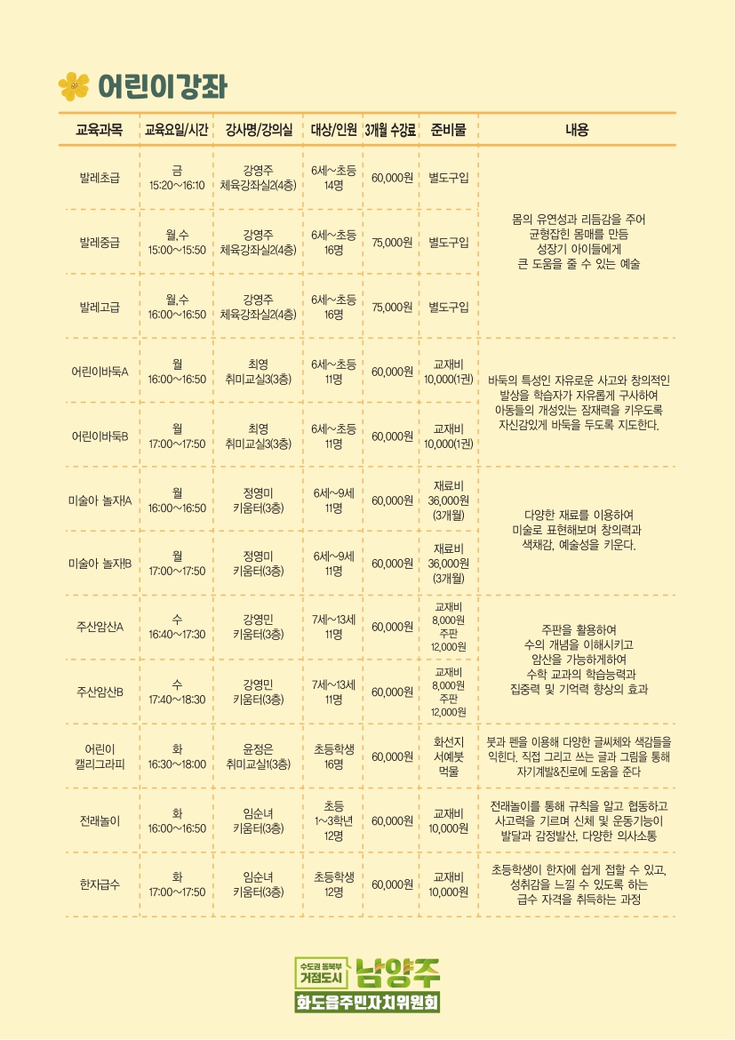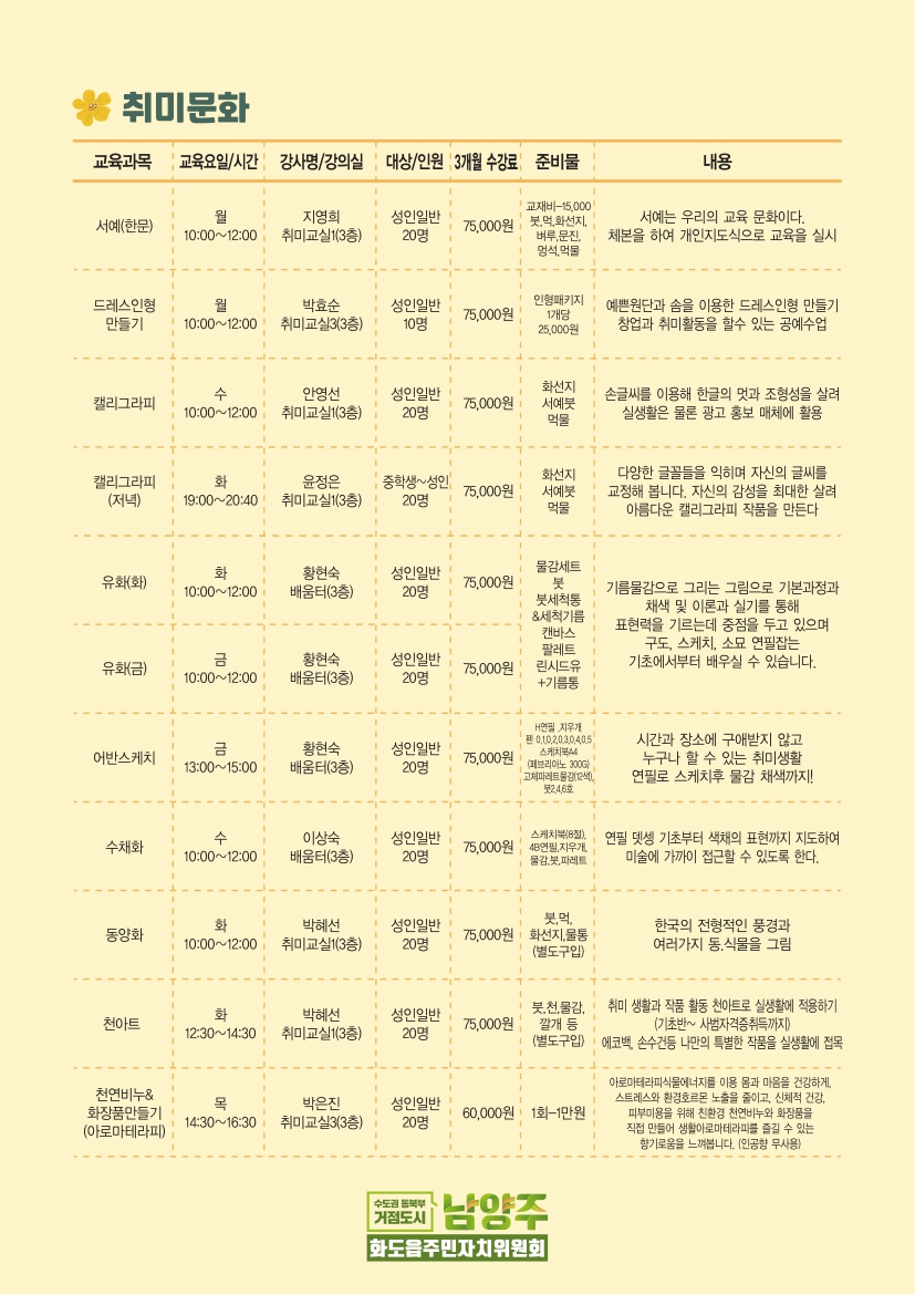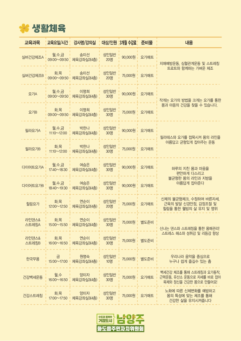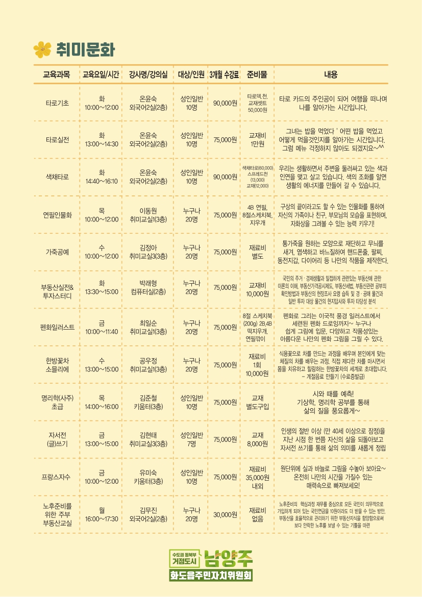 원활한 센터운영을 위해 일부 강좌 수강료를 월 5,000원 상향 조정합니다.