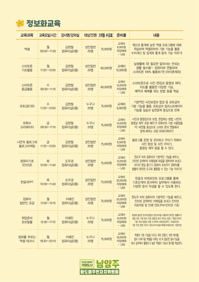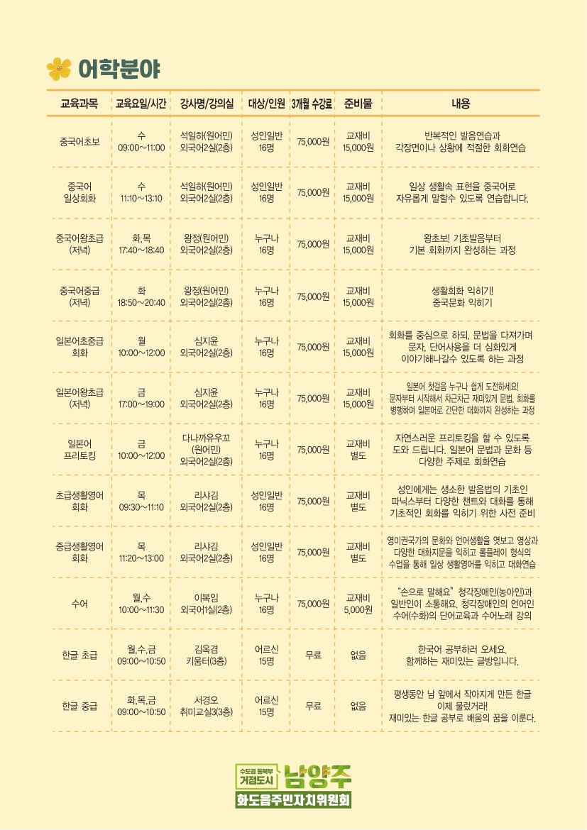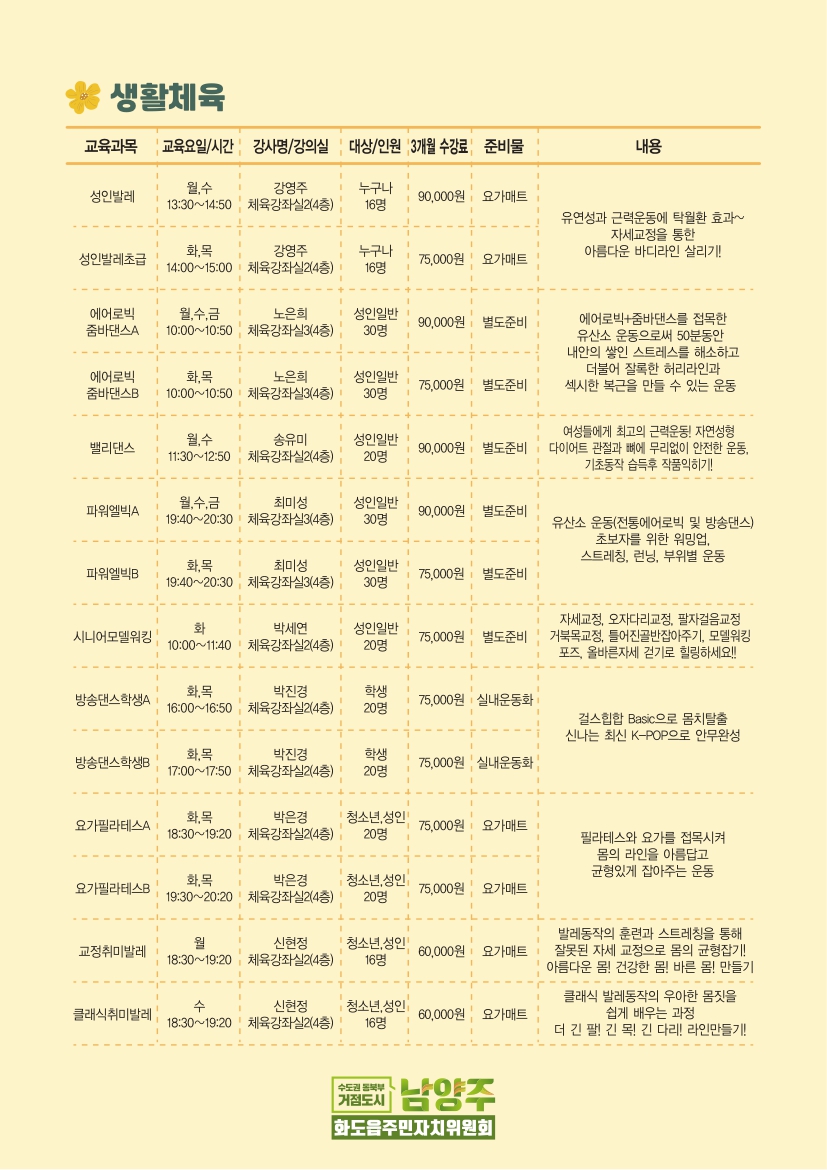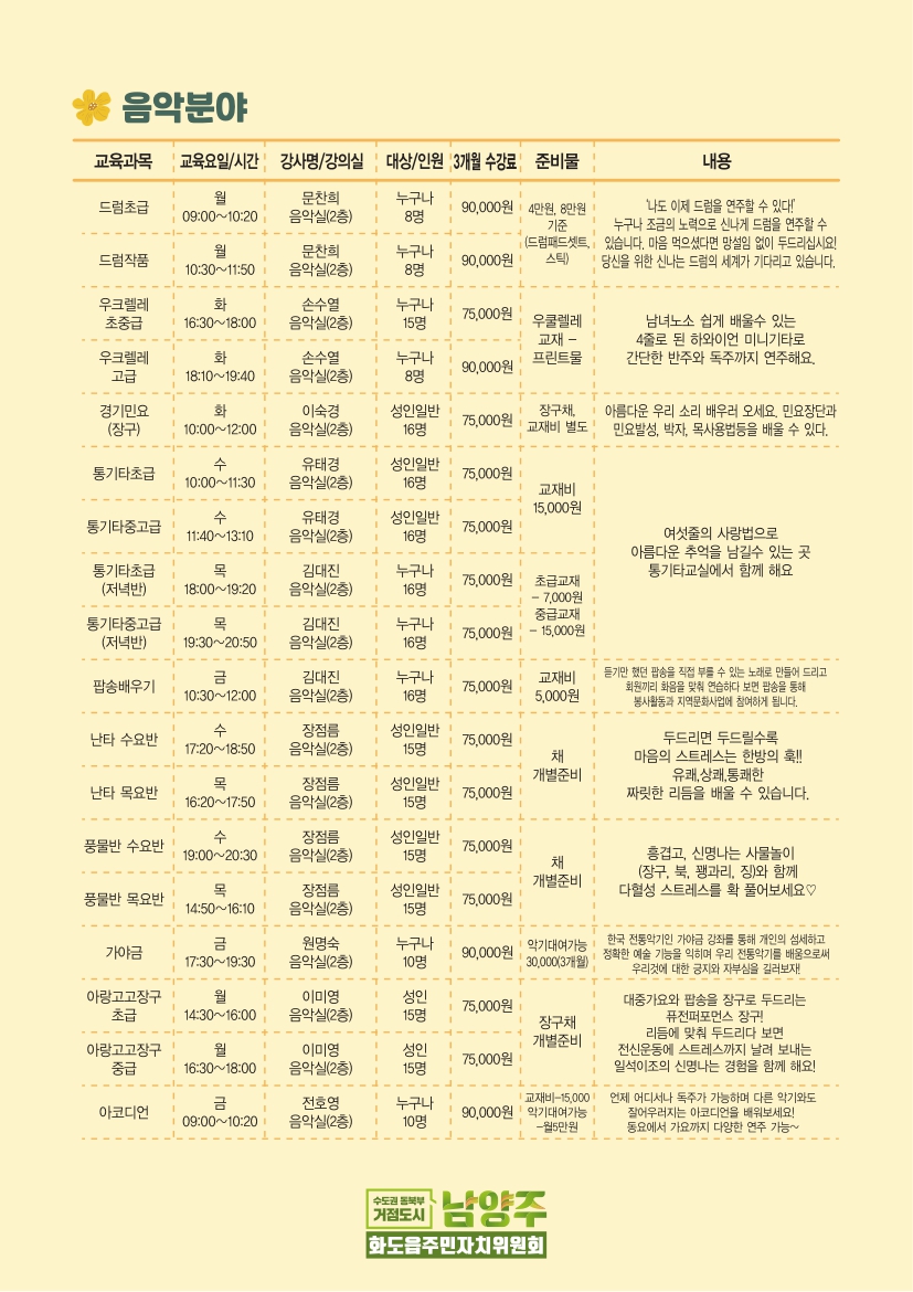 원활한 센터운영을 위해 일부 강좌 수강료를 월 5,000원 상향 조정합니다.