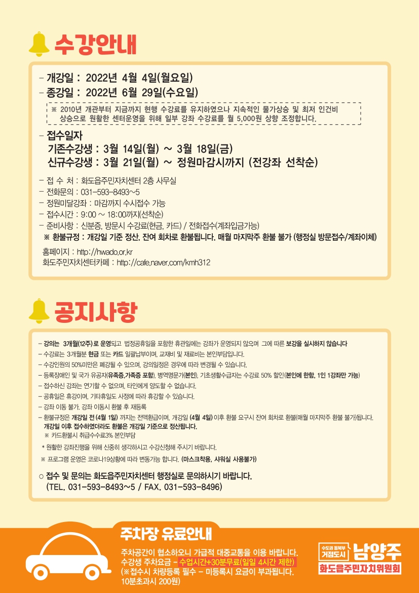 ※ 3/21(월) 신규 수강생 접수 첫날은 현장 방문접수만 가능합니다.