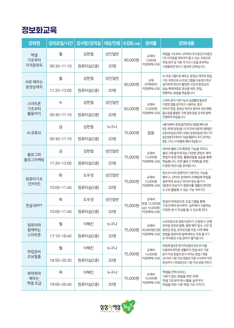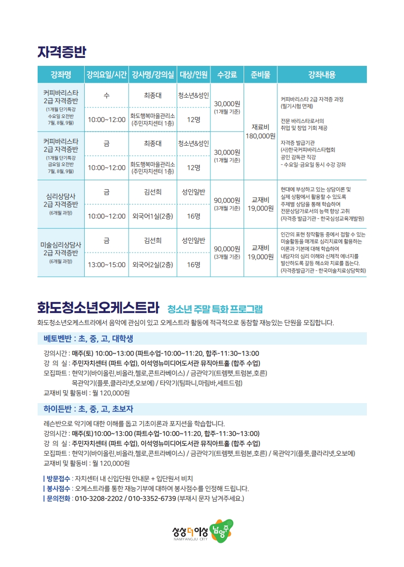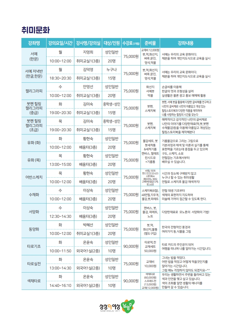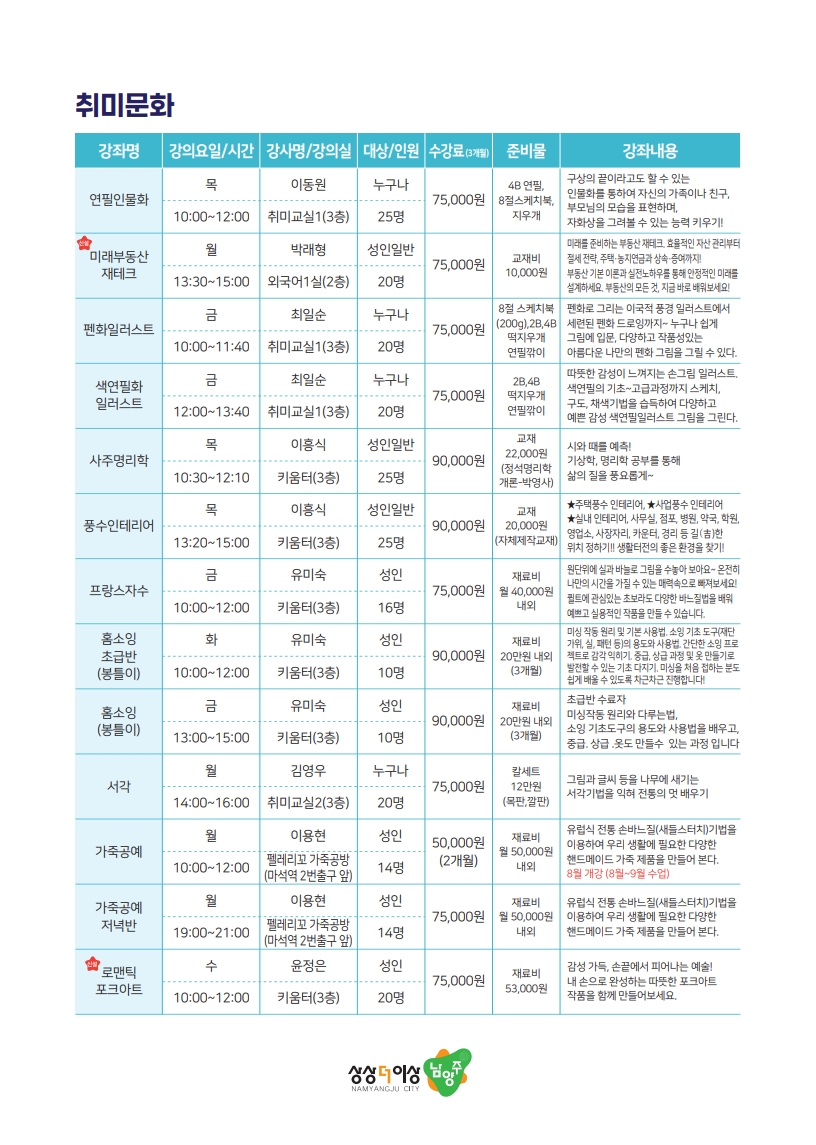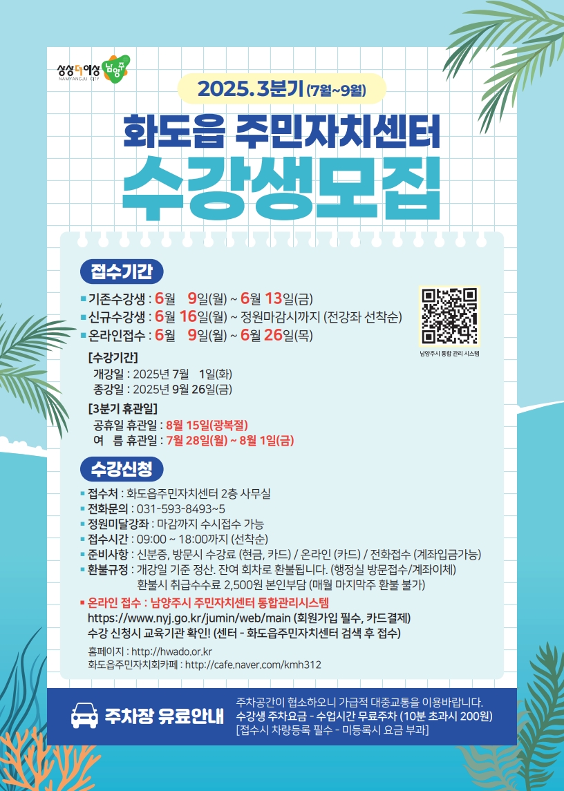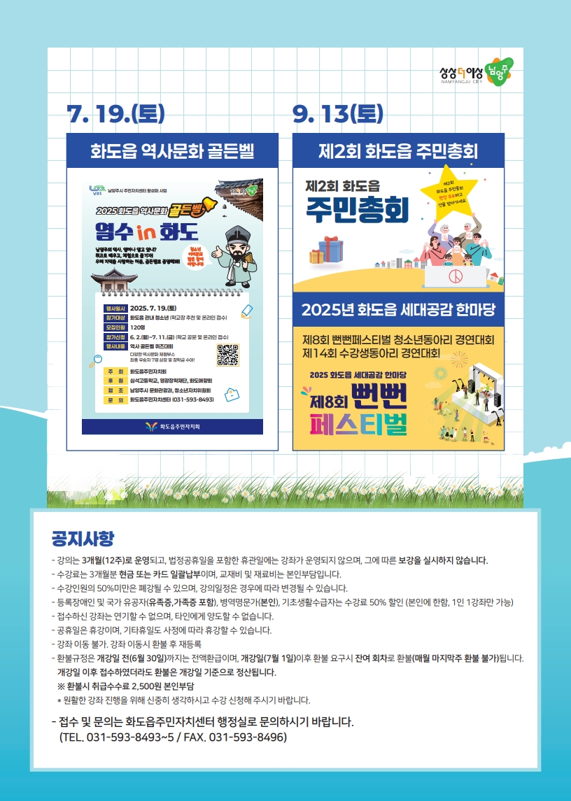 [프로그램안내] [프로그램안내] 2025년 3분기(7월~9월) 화도읍주민자치센터 프로그램 수강생모집안내 |