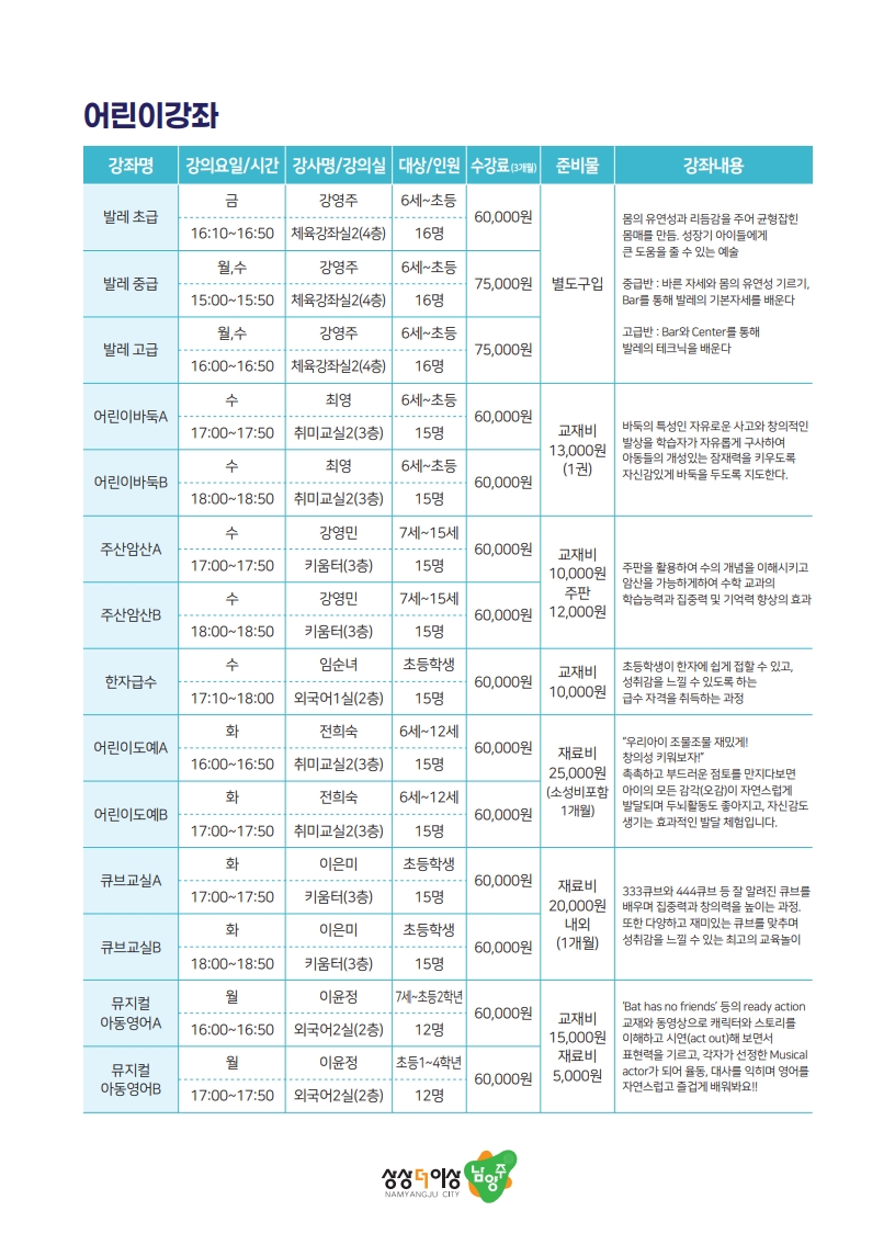 신규수강생 : 6월 167일(월) ~ 정원마감시까지 (전강좌 선착순)