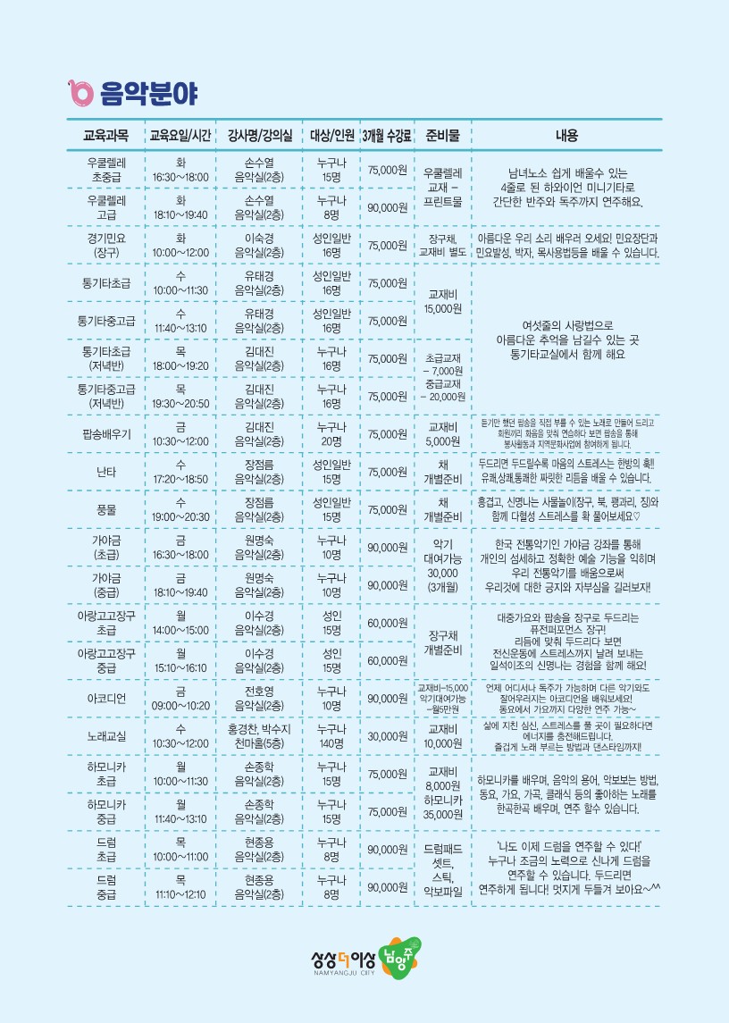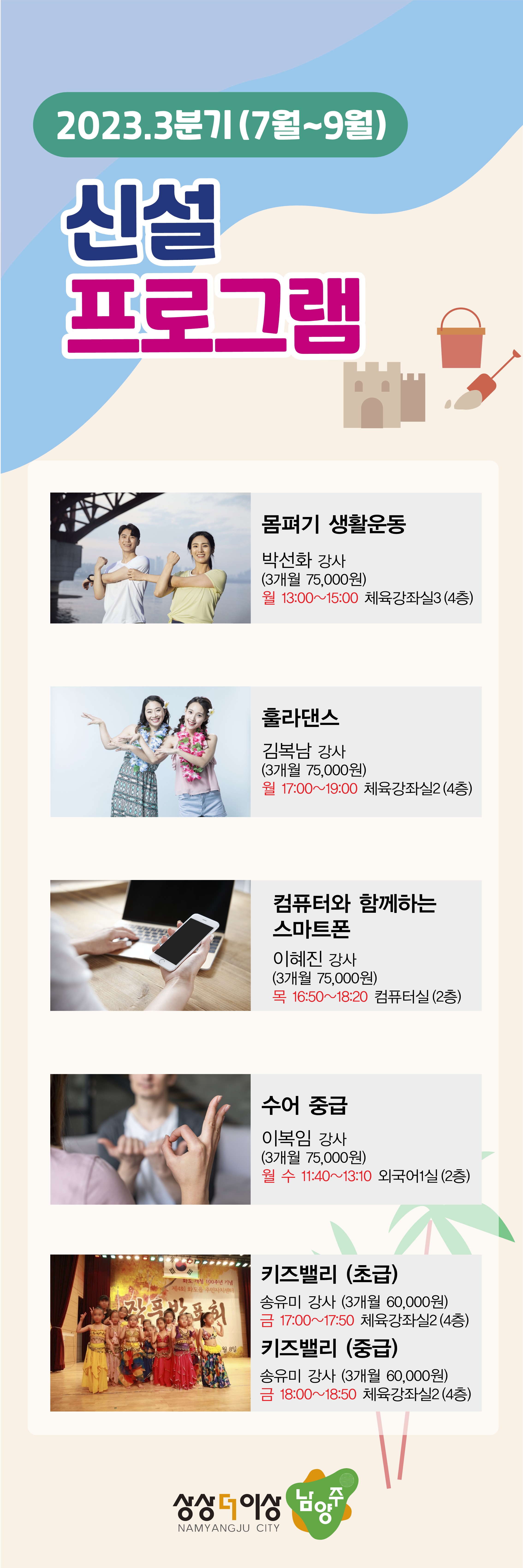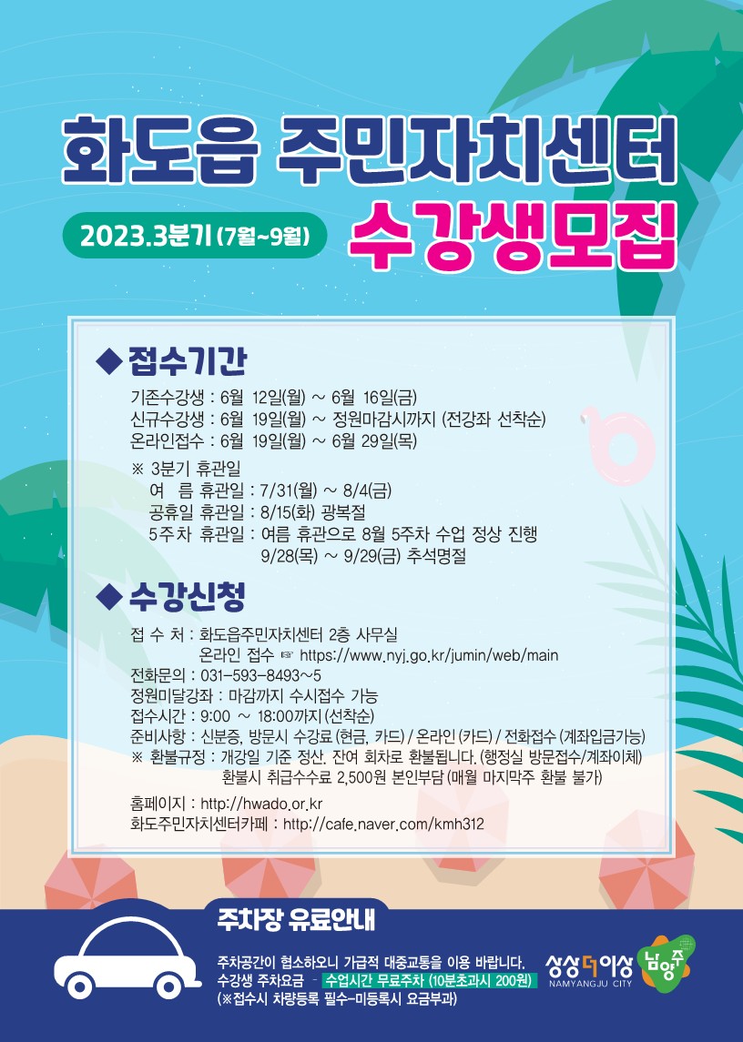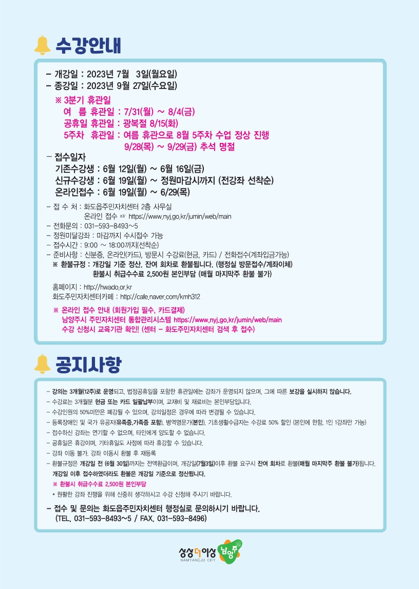 [프로그램안내] 2023년 3분기(7월~9월) 화도주민자치센터 프로그램 수강생모집안내 |