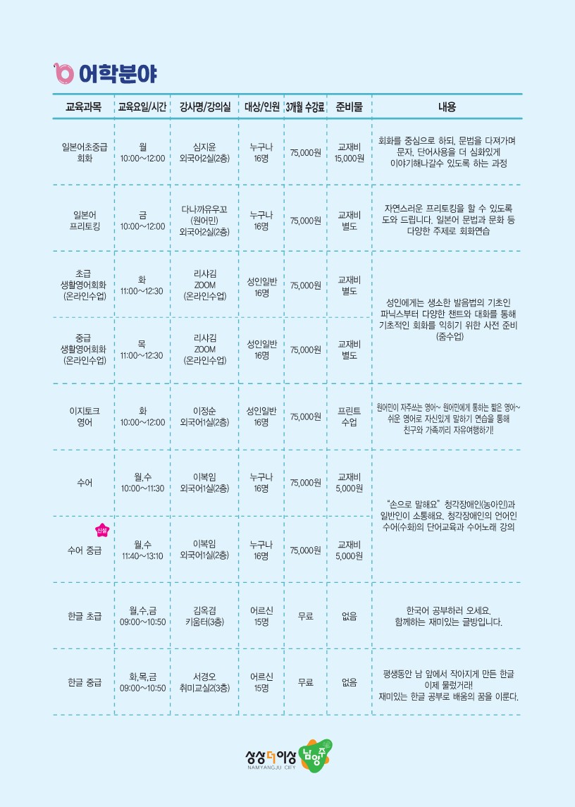 신규수강생 : 6월 19일(월) ~ 정원마감시까지 (전강좌 선착순)