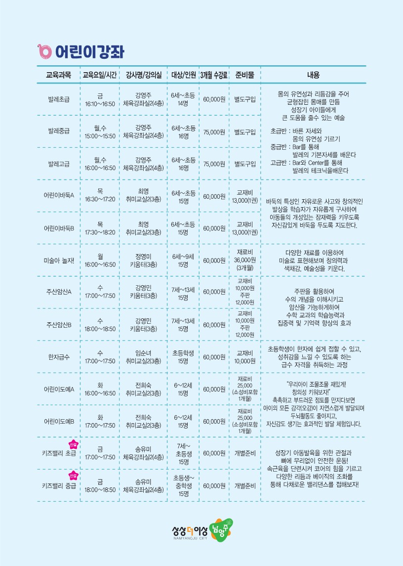 5주차 휴관일 : 여름 휴관으로 8월 5주차 수업 정상 진행
