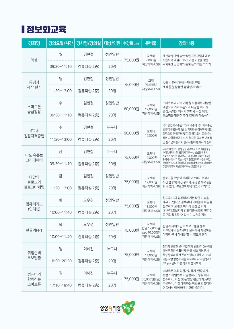 ➩준비사항 : 신분증, 온라인(카드), 방문시 수강료(현금, 카드)