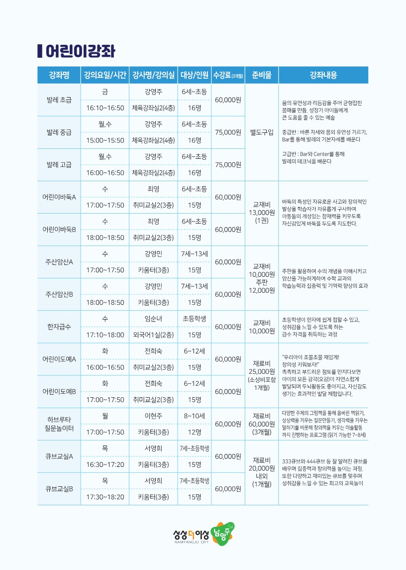 강좌별 안내 |