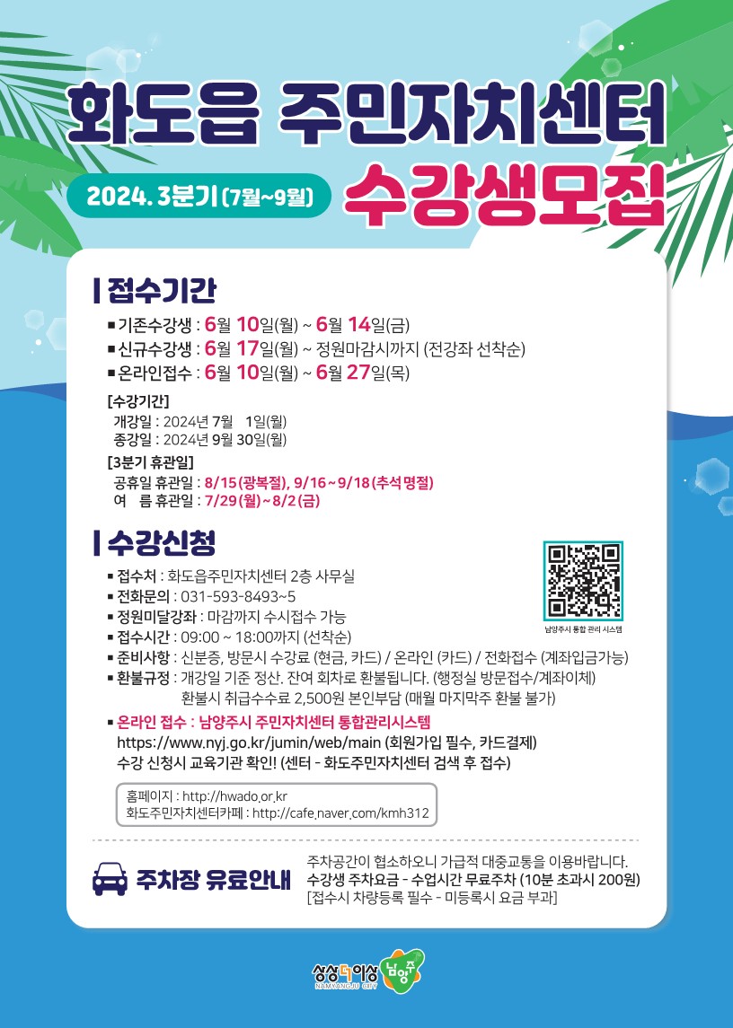 2024년 3분기(7월~9월) 화도읍주민자치센터 프로그램 수강생모집안내 0 |