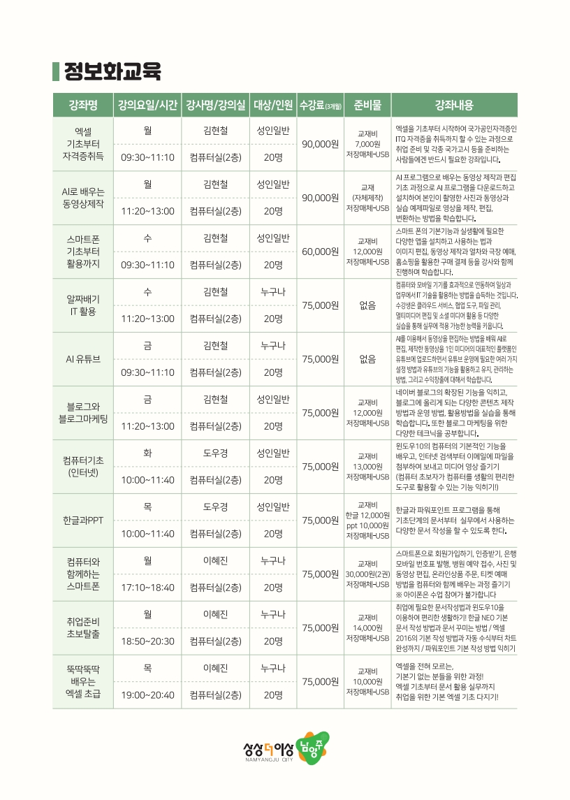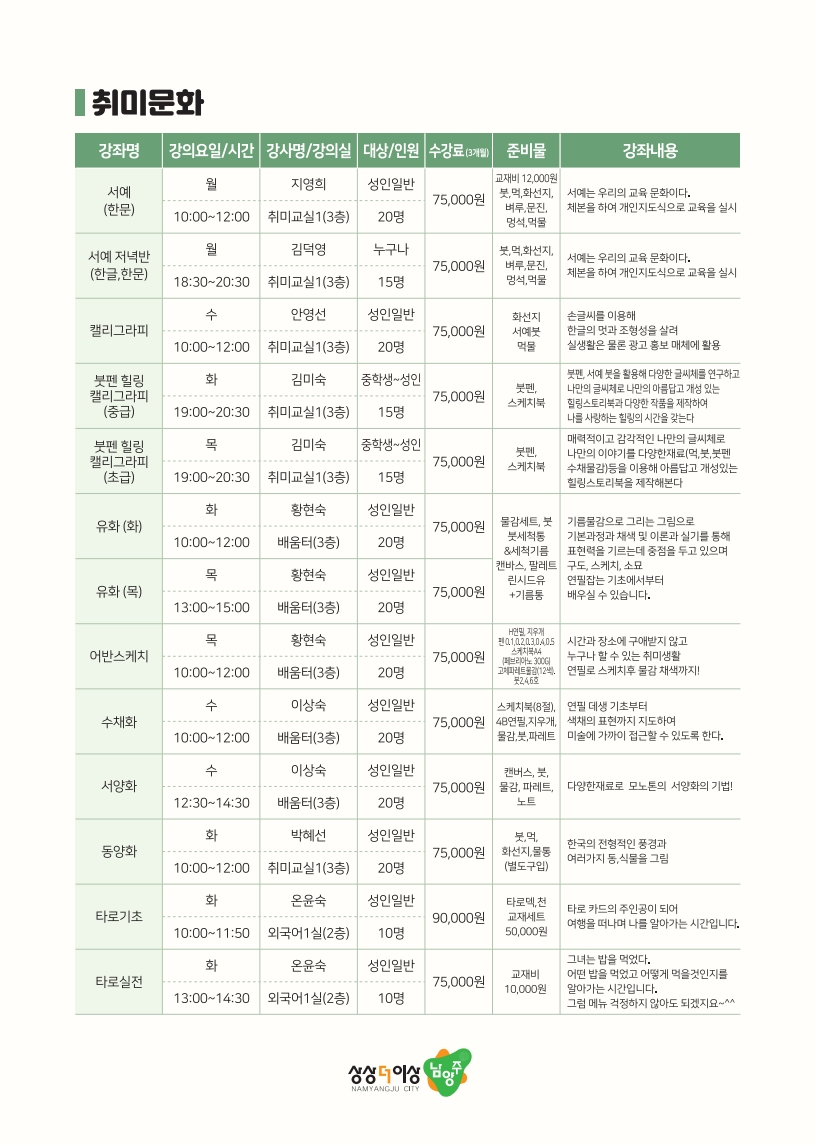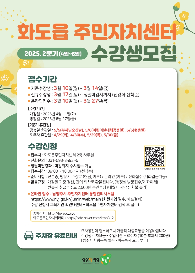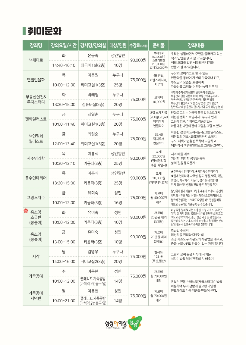[프로그램안내] 2025년 2분기(4월~6월) 화도읍주민자치센터 프로그램 수강생모집안내 0 |