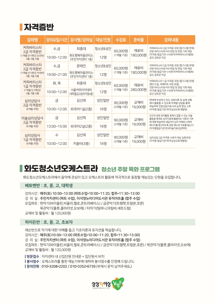 [프로그램안내] [프로그램안내] 2025년 2분기(4월~6월) 화도읍주민자치센터 프로그램 수강생모집안내 |