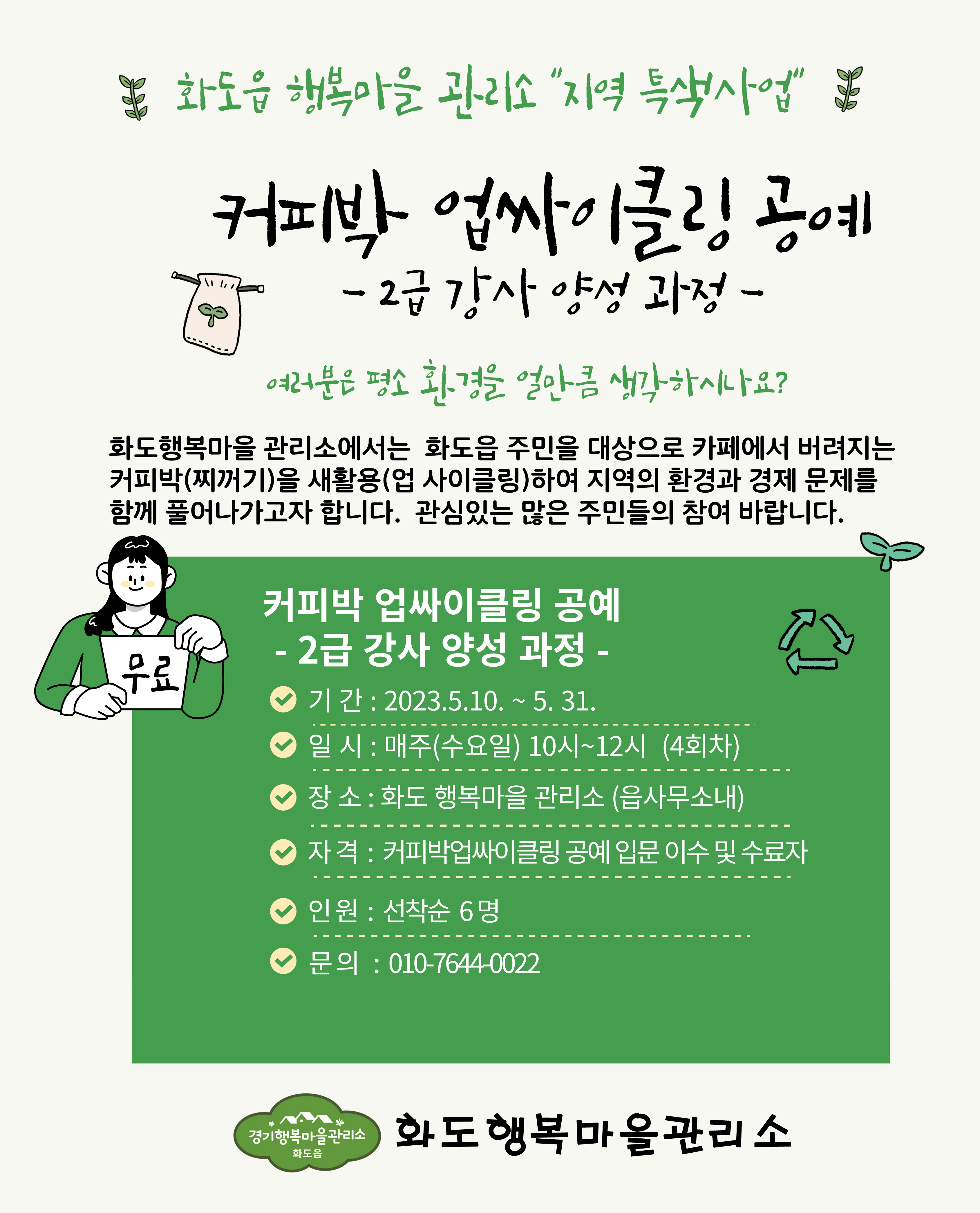 커피박 업사이클링 공예 2급 강사 양성과정 교육생을 모집