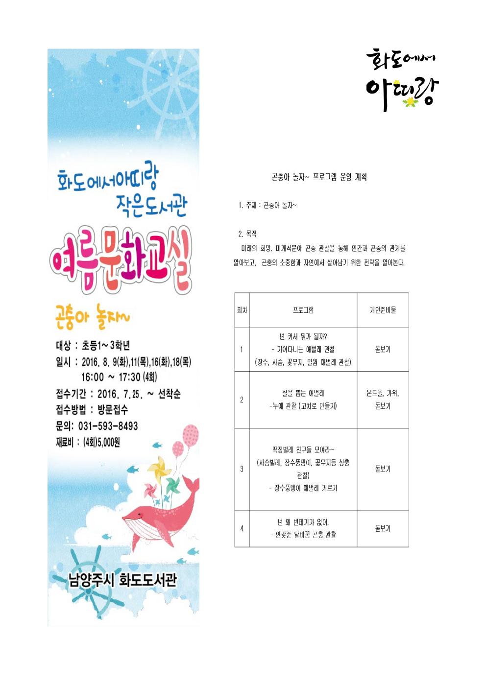 화도읍주민자치센터 화도에서아띠랑작은도서관 『곤충아놀자』여름문화교실 무료프로그램