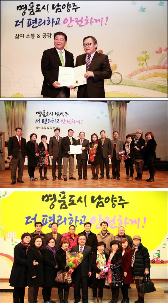 2014년 남양주시 주민자치센터 운영평가 주민자치분야 ”최우수상 수상“ 원종철 화도읍장을 비롯하여 3기주민자치위원 모두 헌신적인 노고에 감사드립니다. 김종근위원장과 자치위원들께서 최선을 다해서 활동해주신 결과에 다시한번 감사드립니다.