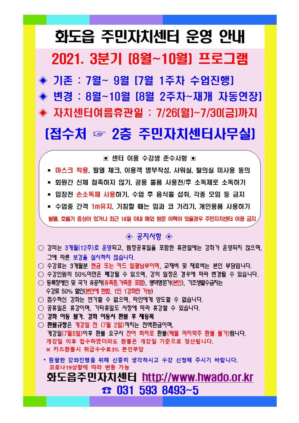 7월~9월 강좌를 8월~10월 강좌로 연장하여 진행 예정입니다.