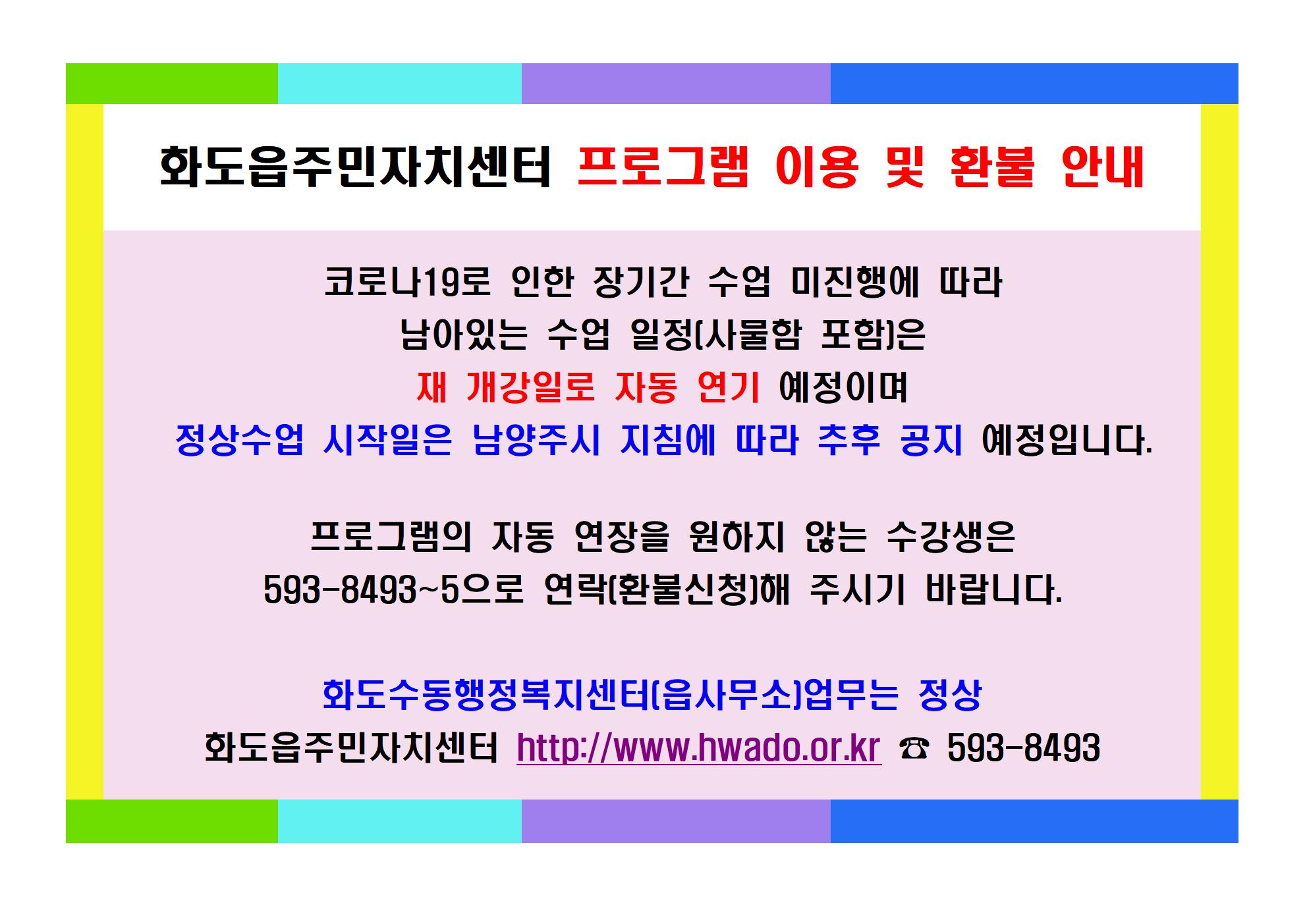 화도읍주민자치센터 프로그램 이용 및 환불 안내