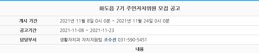 ※ 기타 궁금하신 사항은 화도수동행정복지센터 생활자치과 자치지원팀(☏ 031-590-5451) 로