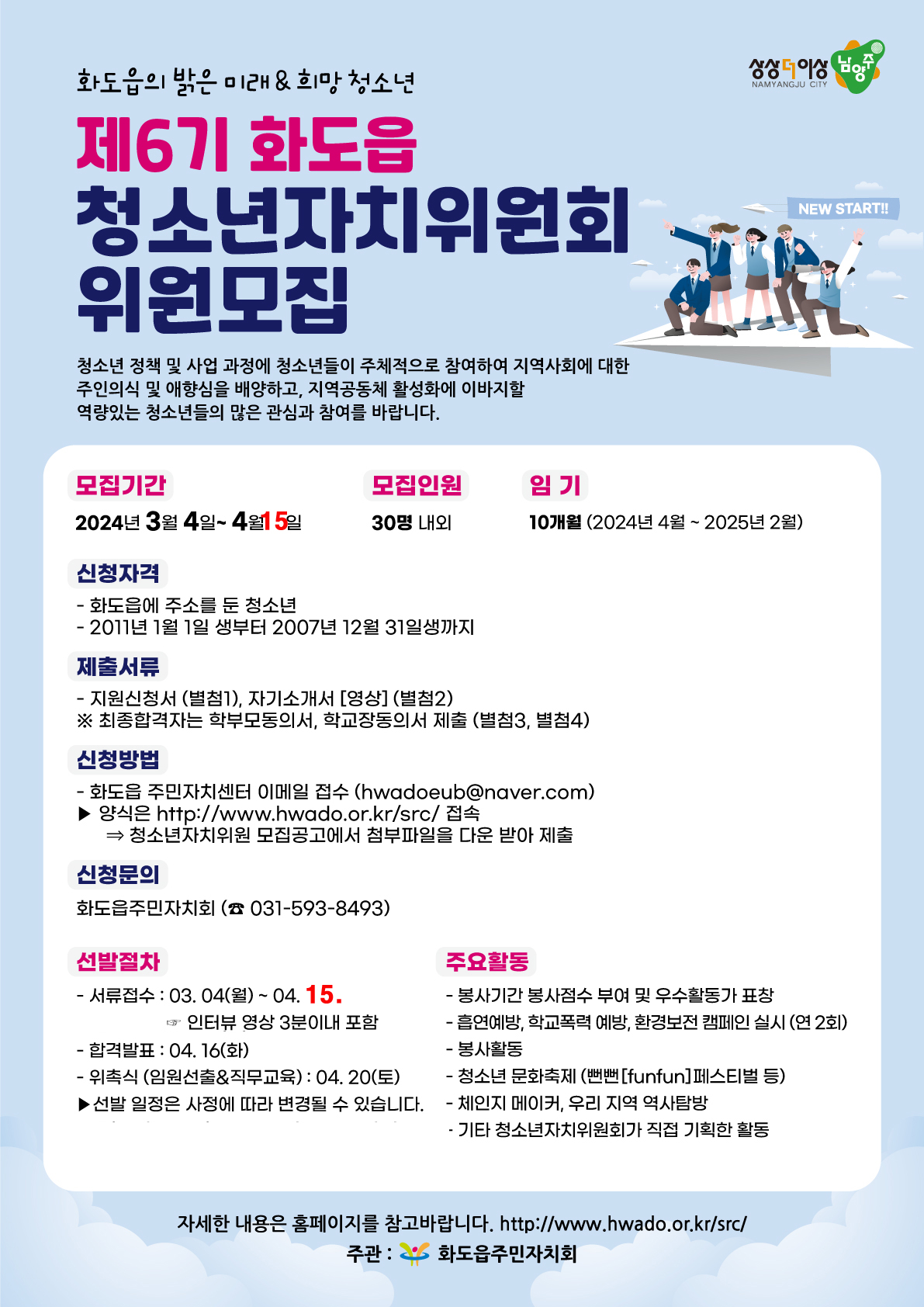※ 6기 화도읍청소년자치위원회 위원 모집 연장 공고