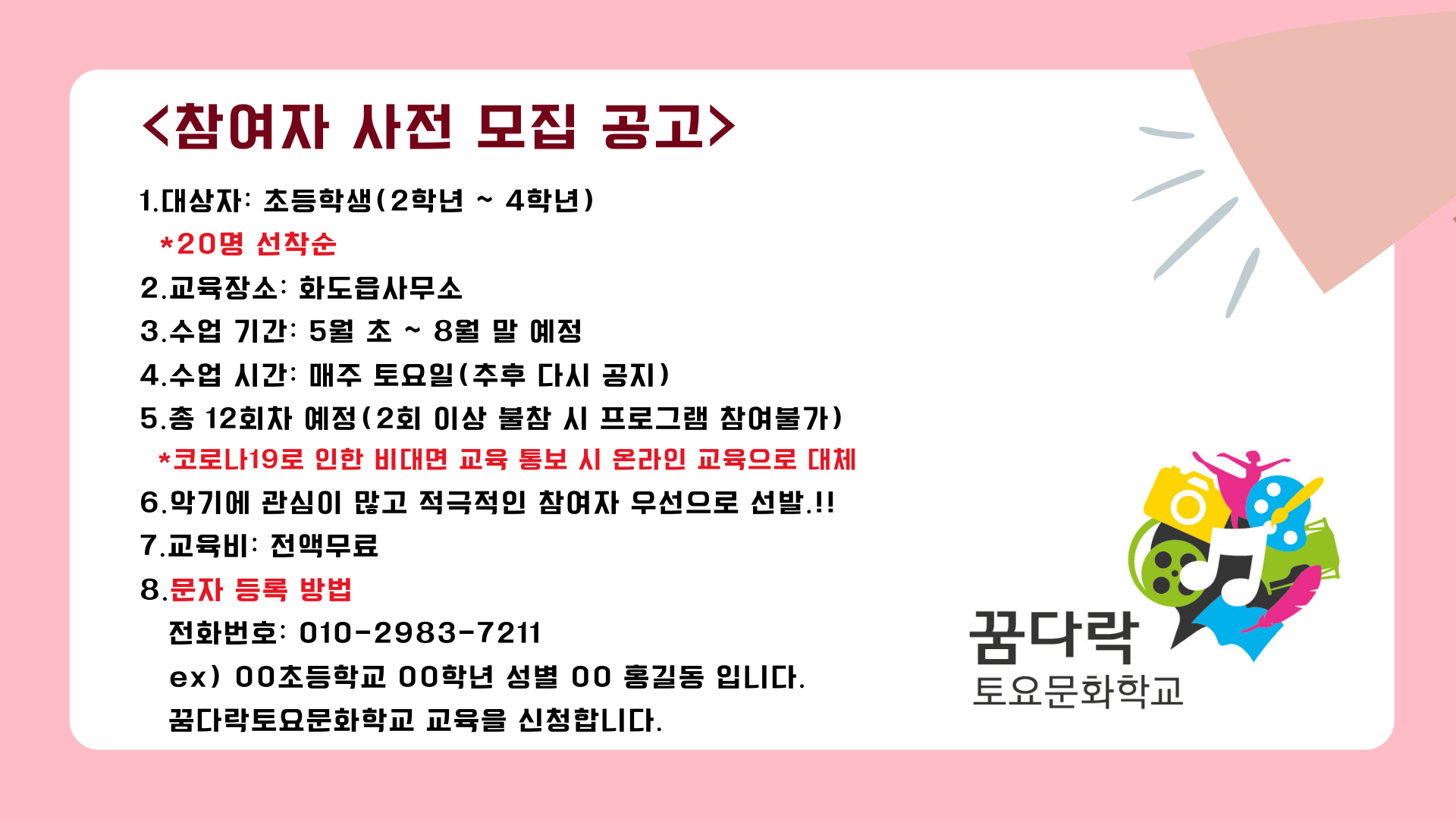 이번 2022년 꿈다락 토요문화학교 참여자를 모집합니다!