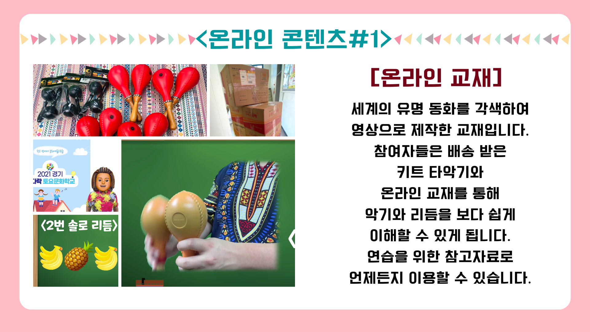 꿈다락 토요문화학교를 7년 동안 남양주 화도지역에서 운영한 예술단체 재미퍼커션 아트 입니다.