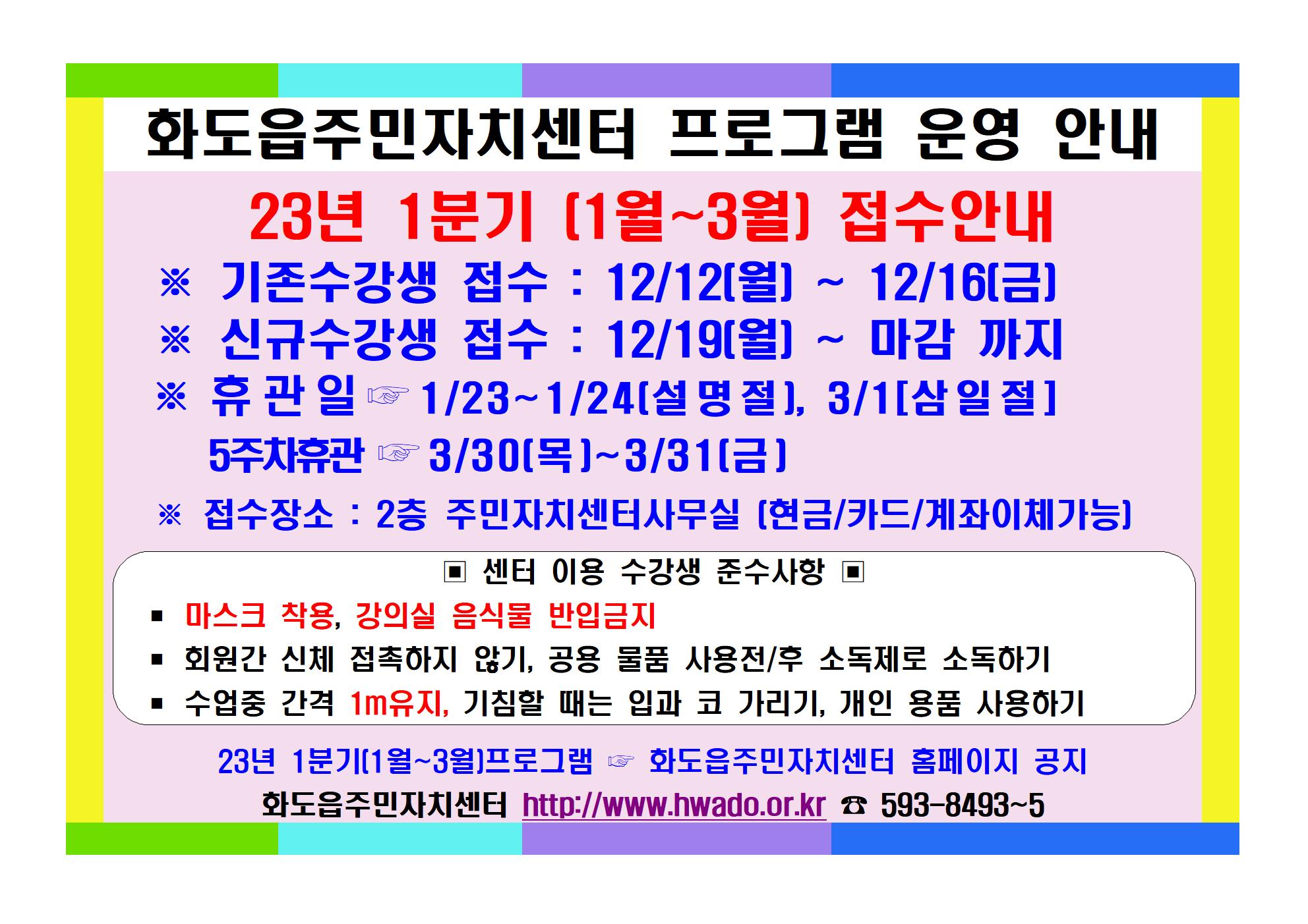 화도주민자치센터 2023년 1분기(1월~3월) 프로그램 접수안내
