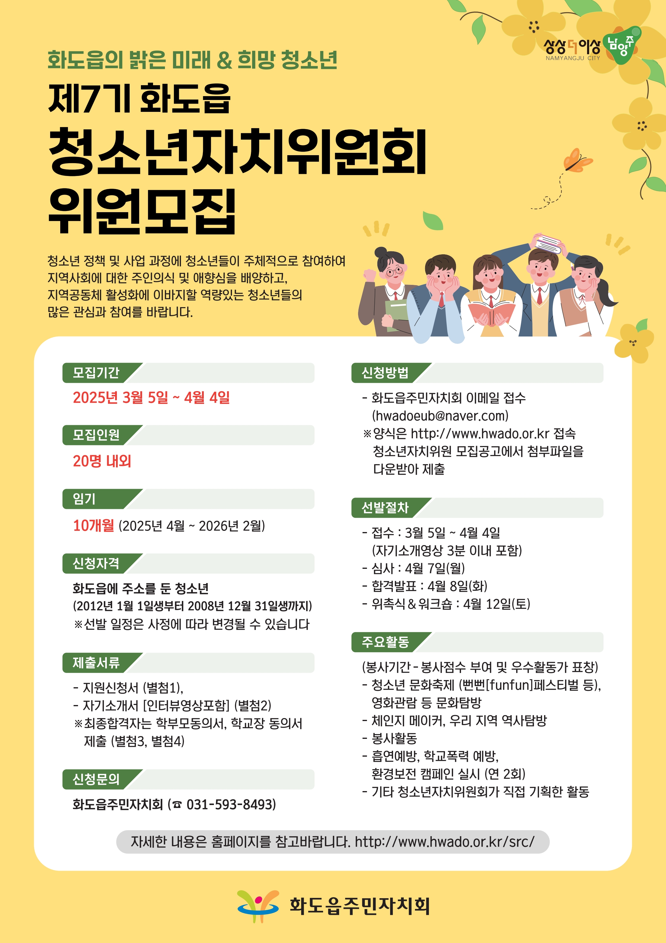 - 신청문의 : 화도읍주민자치위원회 (☎ 031-593-8493)