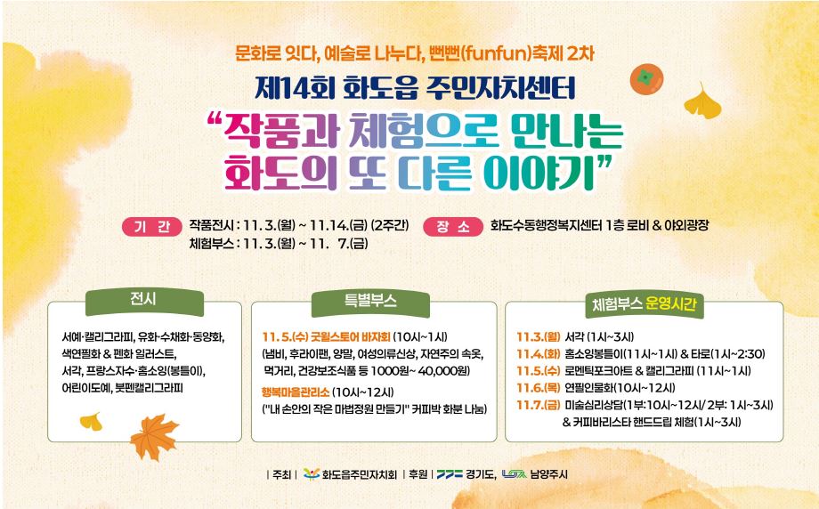 문화로 잇다, 예술로 나누다 "제14회 화도읍 주민자치센터 뻔뻔(funfun)축제 2차’ “작품과 체험으로 만나는 화도의 또 다른 이야기”