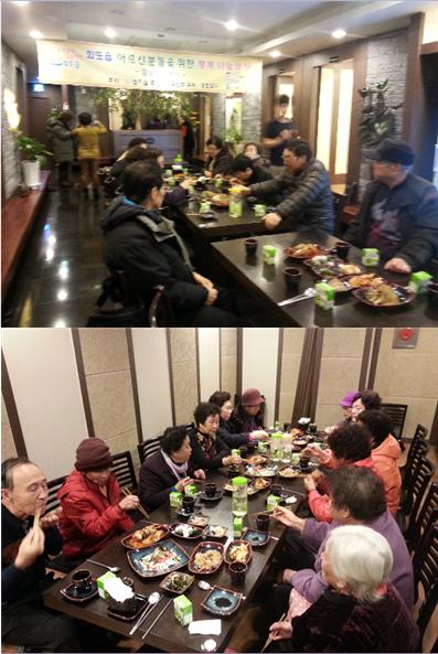 지역어르신을 대상으로 동원참치에서 매월 식사 대접을 하고 있습니다.